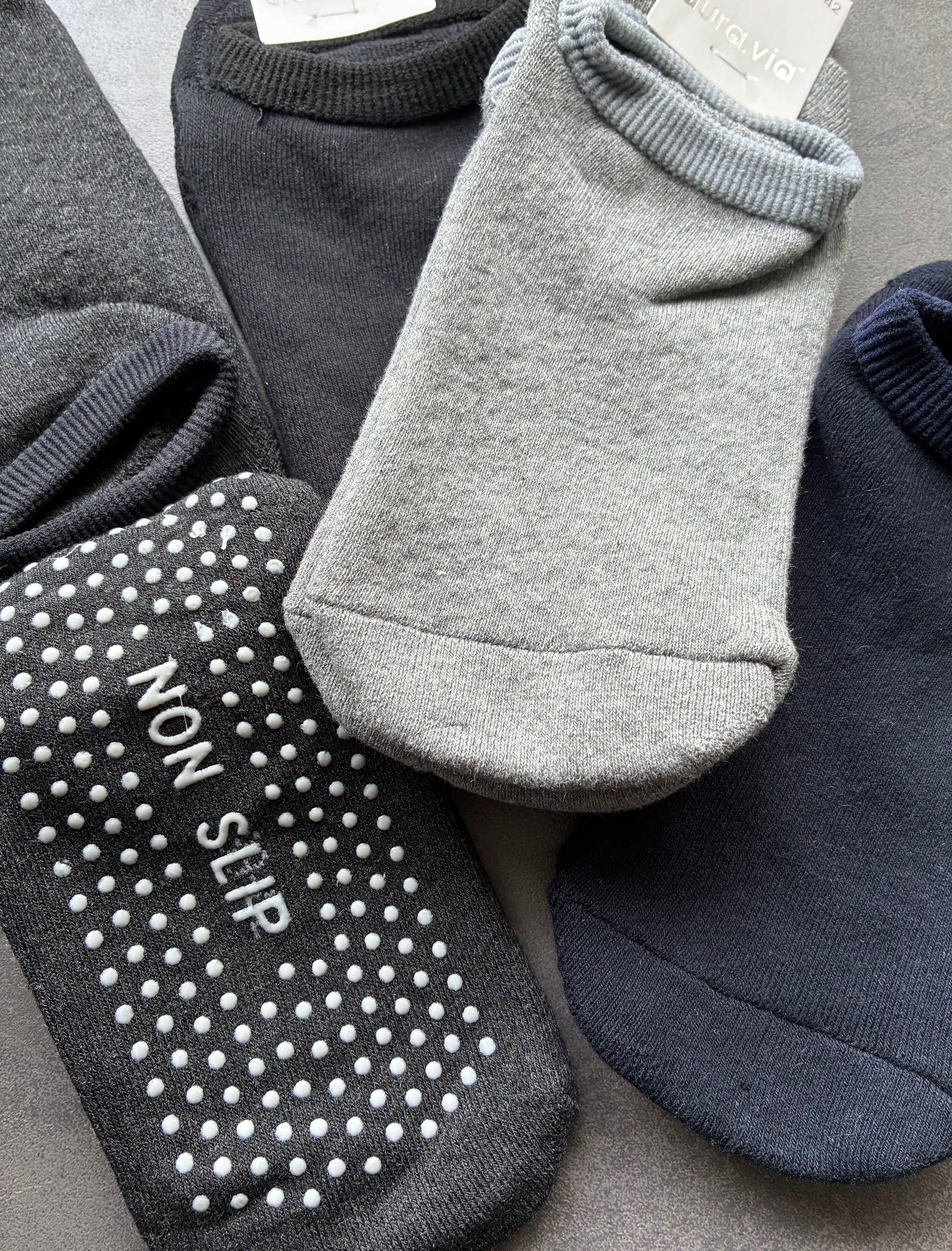 NON slip þykkir herrasokkar/ tátiljur með gúmmí doppum undir iljum.